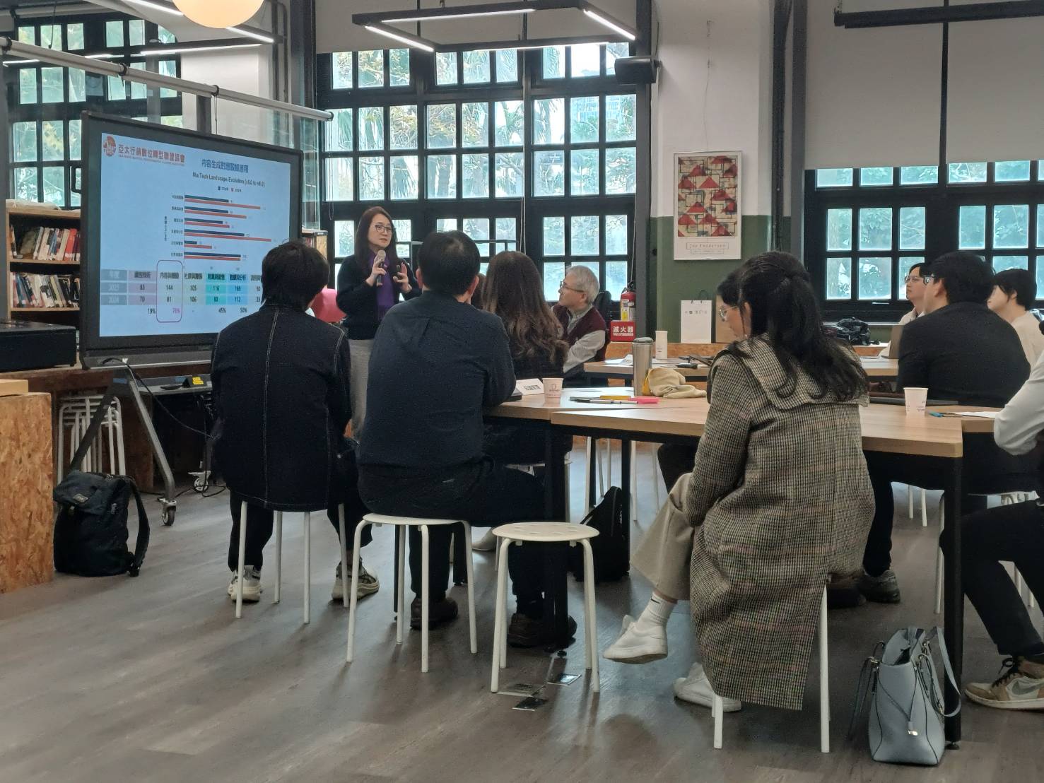 A networking tea break was arranged mid-event to facilitate interaction and strengthen connections among participants. The second half of the event featured a “Co-creation Roundtable Workshop” focusing on the theme “What Can We Do Together?” Moderated by Secretary-General Fu Pei-Chi, the workshop invited Professor Deng-Neng Chen and Assistant Professor Pei-Chi Lo as table facilitators. Participants engaged in group discussions centered on three key themes—marketing, education and training, and knowledge management—to identify practical pain points, needs, and collaboration ideas. The discussions were highly interactive and generated multiple potential cooperation directions.